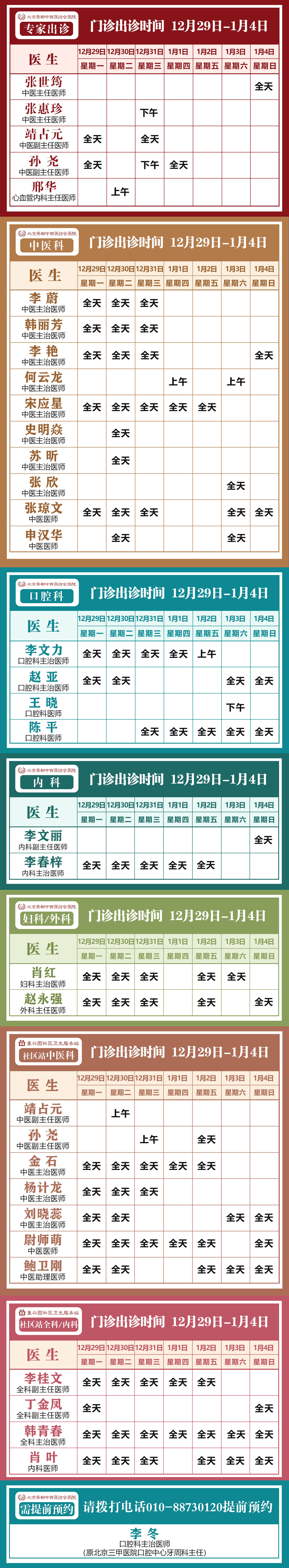 就诊指南 | 北京燕都元旦期间(12月29日-1月4日)门诊医生出诊安排
